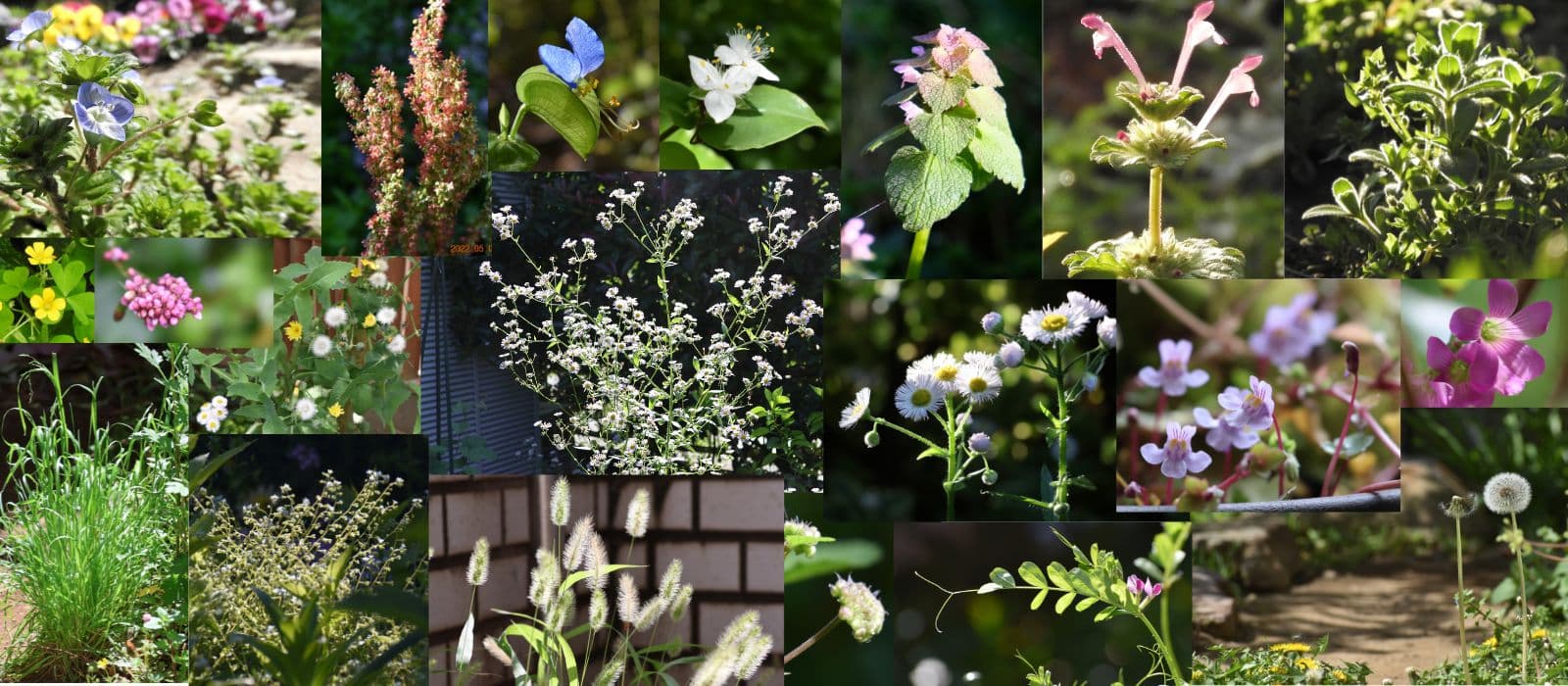 ・ノゲシ ・オニノゲシ ・カラスノエンドウ ・ハルジオン ・ノボロギク ・タチイヌノフグリ ・ムシクサ ・スズメノカタビラ ・ポピー ・アカバナノユウゲショウ ・ヒルザキツキミソウ ・オニタビラコ ・トキワツユクサ ・ウラジロチチコグサ ・イヌムギ