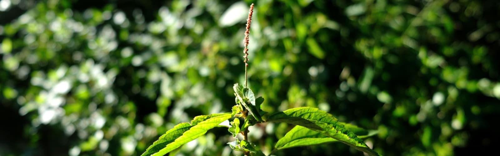 増え方 編み笠葉の上に伸びる花に見えない赤いのが雄花。棒に赤マメがくっついている感じ。それが落ちると編み笠葉が受け止め、編み笠葉の基部にある雌花とくっ付いて受粉。なんともユニークな実のつけ方。