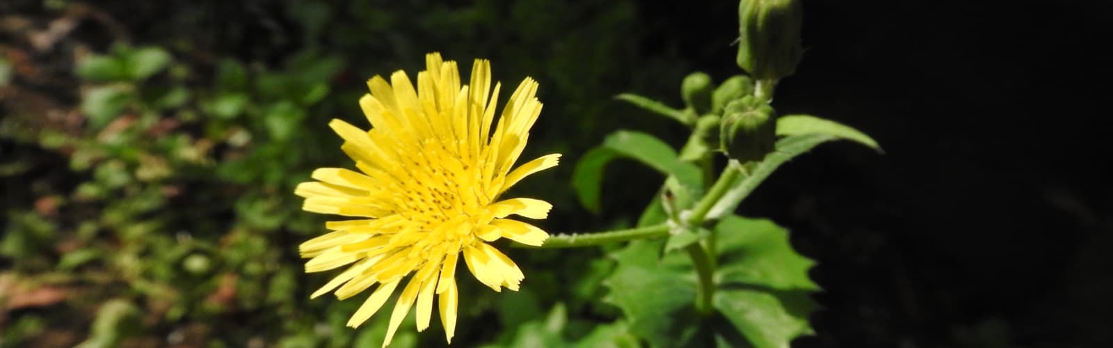 生え場所 木陰のノゲシは、株元から枝分かれして背が高く伸びる。葉陰のあちこちから顔を出すため。